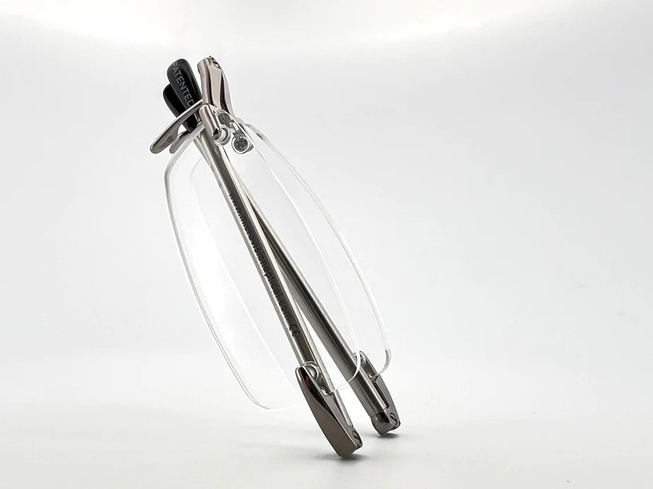 3ピースのステンレスフレームと縁なしレンズにより、長時間の使用でも疲れにくい設計。折りたたみ式のコンパクトデザインで、ビジネスバッグやスーツのポケットに収納しやすく、会議や出張時の携帯に便利です。